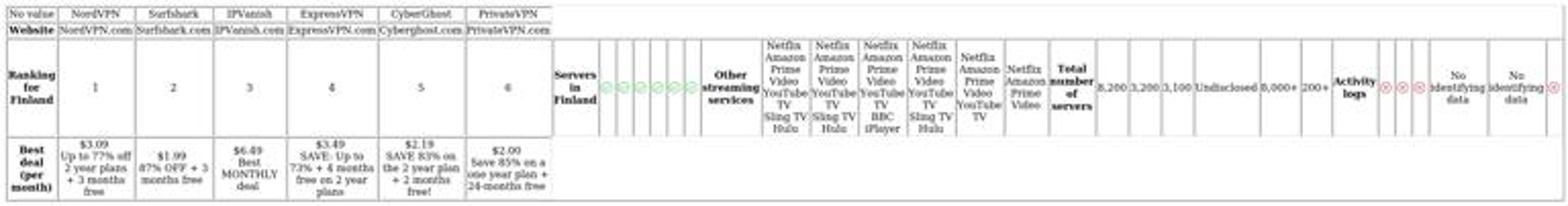 Below are the providers that stood out for users in Finland. Oct 2025NordVPN delivers Finland's premier virtual private network solution