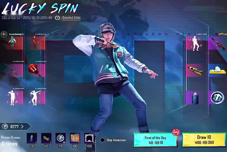 Players have the chance to spin and unlock a wide array of exclusive items, including legendary outfits and exciting rewards. Among these are the stylish G-Dragon-themed ensembles such as the PMO Daisy outfit set and the Crimson Crown set, perfect for standing out on the battleground. Weapon enthusiasts can look forward to skins like the Ubermensch M16A4, which features an upgradeable finish, along with the Graffiti Reverie M24 sniper rifle skin and a uniquely designed G-Dragon-themed pan skin.