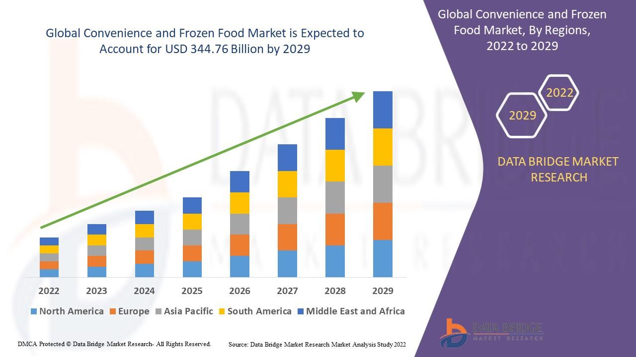 The convenience and frozen food market is expected to be growing at a growth rate of 5.00% in the forecast period of 2022 to 2029 and is likely to reach the USD 344.76 billion by 2029.