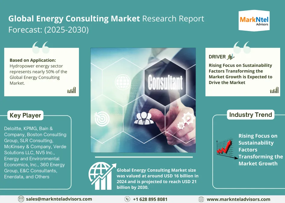 MarkNtel Advisors, a leading market research and consulting firm, has announced the release of its latest study titled Energy Consulting Market Research Report: Forecast (2025–2030). This report provides a detailed assessment of the Energy Consulting Market, covering its evolving dynamics, emerging trends, key growth drivers, major challenges, and competitive landscape.